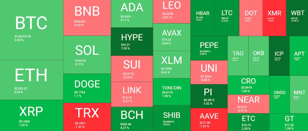 Bununla birlikte, HYPE neredeyse yüzde 8’lik bir artışla tekrar sahnedeydi. Sonuç olarak, varlık şu anda tüm zamanların en yüksek seviyesi olan yaklaşık 43 dolar seviyesine yakın işlem görüyor. Geçen günün diğer önemli kazananları arasında WBT, Fartcoin, PI ve ICP yer alıyor.
