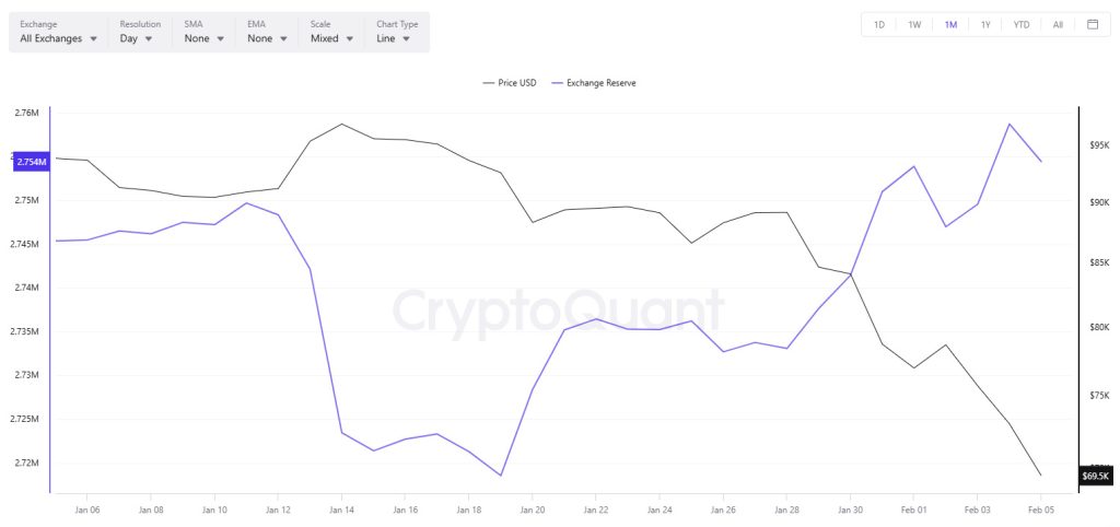 Son yatırımcı davranışları düşüş tezini destekliyor. CryptoQuant’tan alınan verilere göre, borsalarda tutulan BTC miktarı son birkaç haftadır artıyor. Bu, birçok piyasa katılımcısının varlıklarını kendi saklamalarından merkezi platformlara taşıdığını gösteriyor; bu da genellikle ön satış adımı olarak yorumlanıyor.