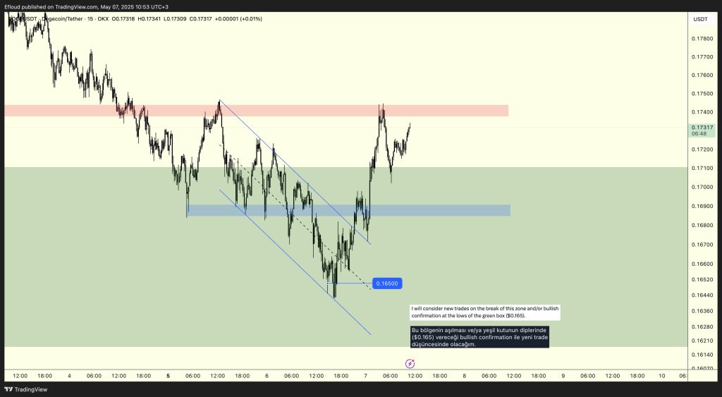 Efloud ise 0,169 doları düşük zaman dilimi (LTF) destek seviyesi olarak tanımladı: “Fiyat bu bölgeyi kaybetmezse büyük bir sorun görmüyorum. Bu bölge, geri çekilmelerde bir destek alanı olarak çalışabilir.”
