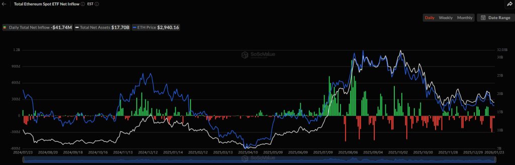 Spot Ethereum ETF’lerinin durumu da benzer şekilde endişe verici. Fonlar, 6 Ocak’a kadar 400 milyon doların üzerinde para topladı, 9 Ocak’a kadar benzer bir miktar kaybetti ve ardından ayın ortasında etkileyici bir beş günlük seri yakalayarak yaklaşık 500 milyon dolar kazandı.