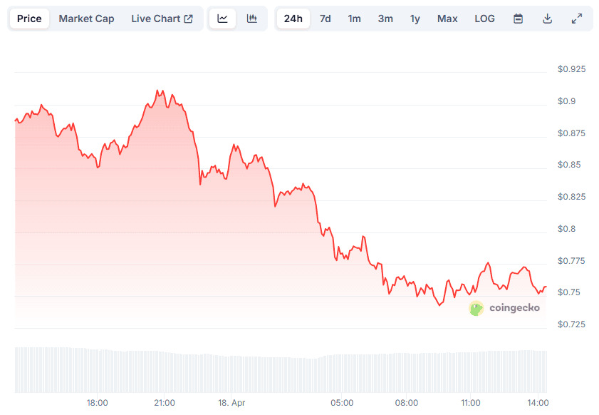 Bu ralli, varlığı tüm kripto piyasasındaki en büyük 100 varlık arasına yerleştirdi. Ancak, son 24 saat boğalara biraz acı verdi. FARTCOIN’in fiyatı yüzde 17 düşüşle 0,75 dolara gerilerken, piyasa değeri yaklaşık 750 milyon dolara gerileme gösterdi.