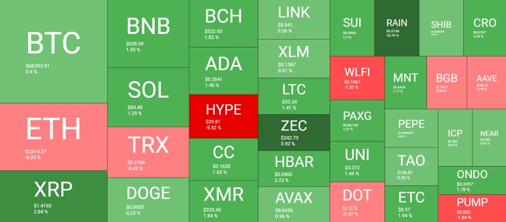 Büyük piyasa değerine sahip altcoinlerin çoğu, günlük bazda durgun kaldı; ZEC yüzde 5,5 oranında yükselirken, son dönemin popüler altcoini HYPE yüzde 5’ten fazla düşüş gösterdi.
