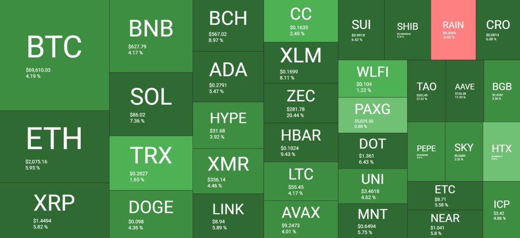Altcoin alanında da dikkat çekici kazançlar yaşandı: ETH 2.100 dolara, SOL 86 dolara yükselirken, XRP 1,45 doları hedefliyor.