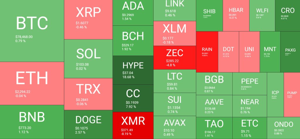 Aynı zaman diliminde kayda değer kazançlar kaydeden HYPE ve CC dışında, diğer büyük hacimli altcoinlerin çoğu oldukça durgun seyrediyor.