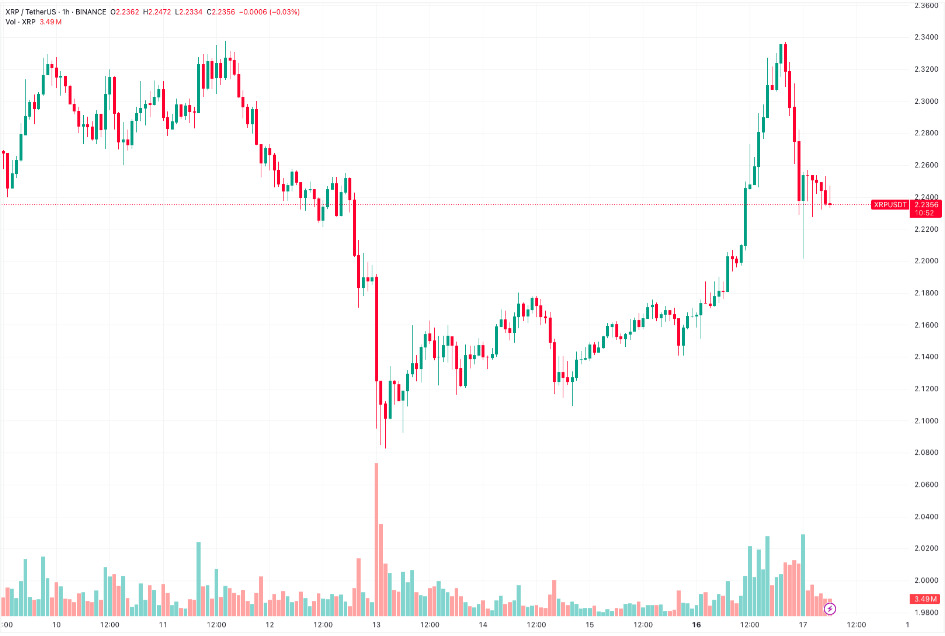 Güncel olarak yaklaşık 2,24 dolardan işlem gören XRP, gün içinde yüzde 2,4 artışla ilk 15’te en iyi performans gösteren altcoin oldu. Altcoinin fiyatı, son 24 saat içinde en yüksek seviyesi olan 2,34 dolara kadar ulaştı, ancak bu seviyeden geri çekilme yaşadı.